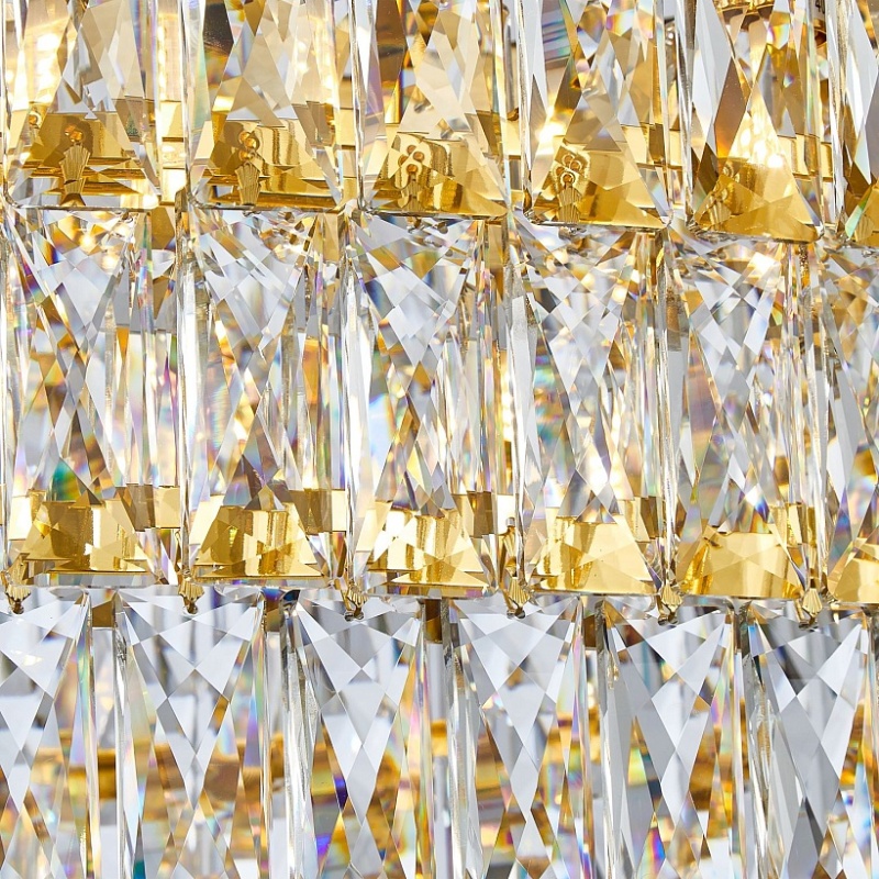 Металлический каркас золотого цвета, хрусталь прямоугольной формы высшего качества.