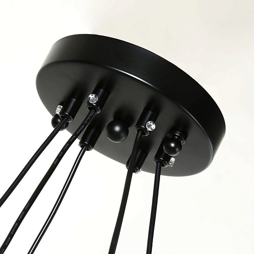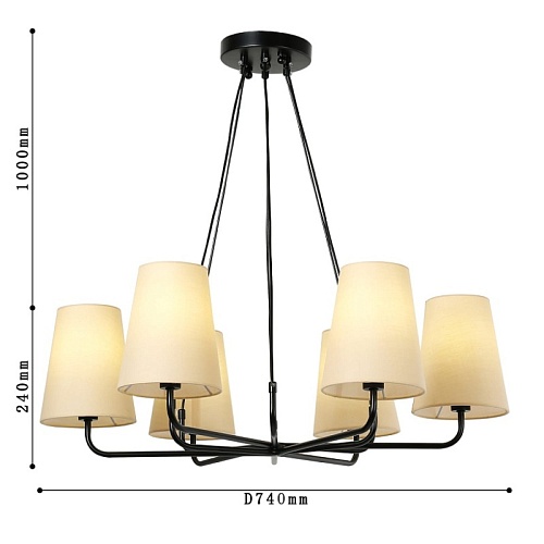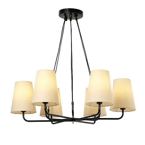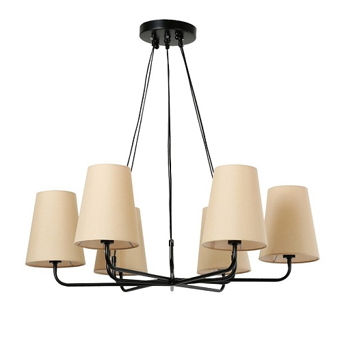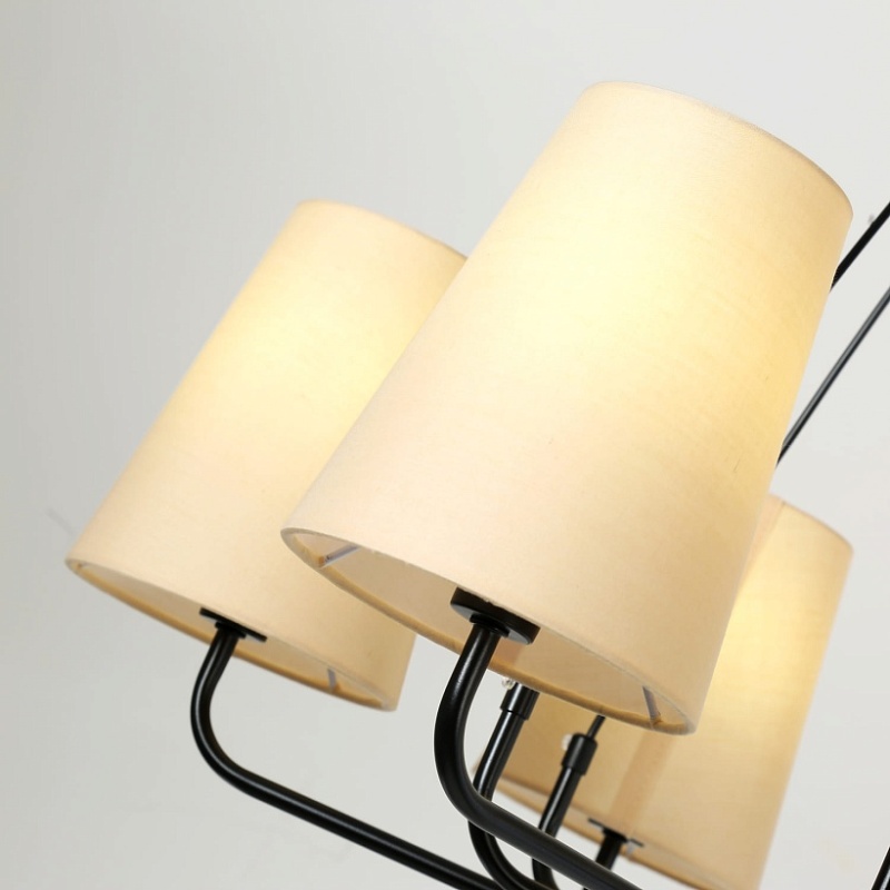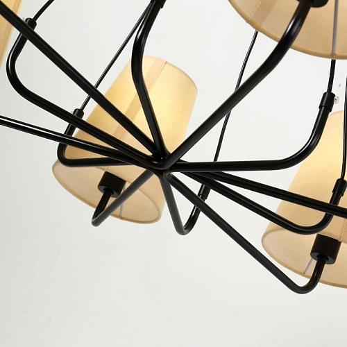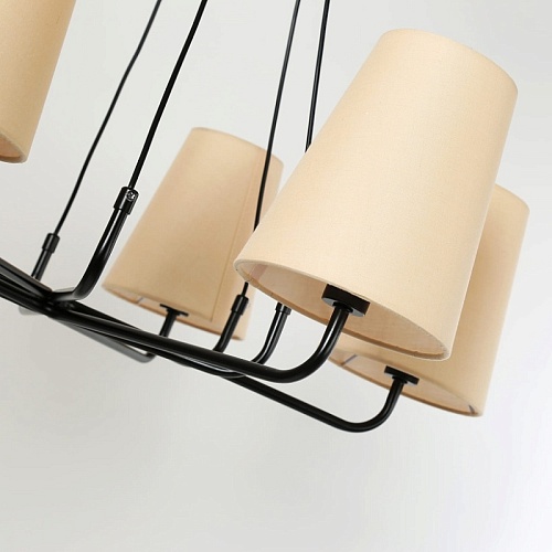 Металлический каркас черного цвета, абажуры из ткани бежевого цвета, LED-модуль.