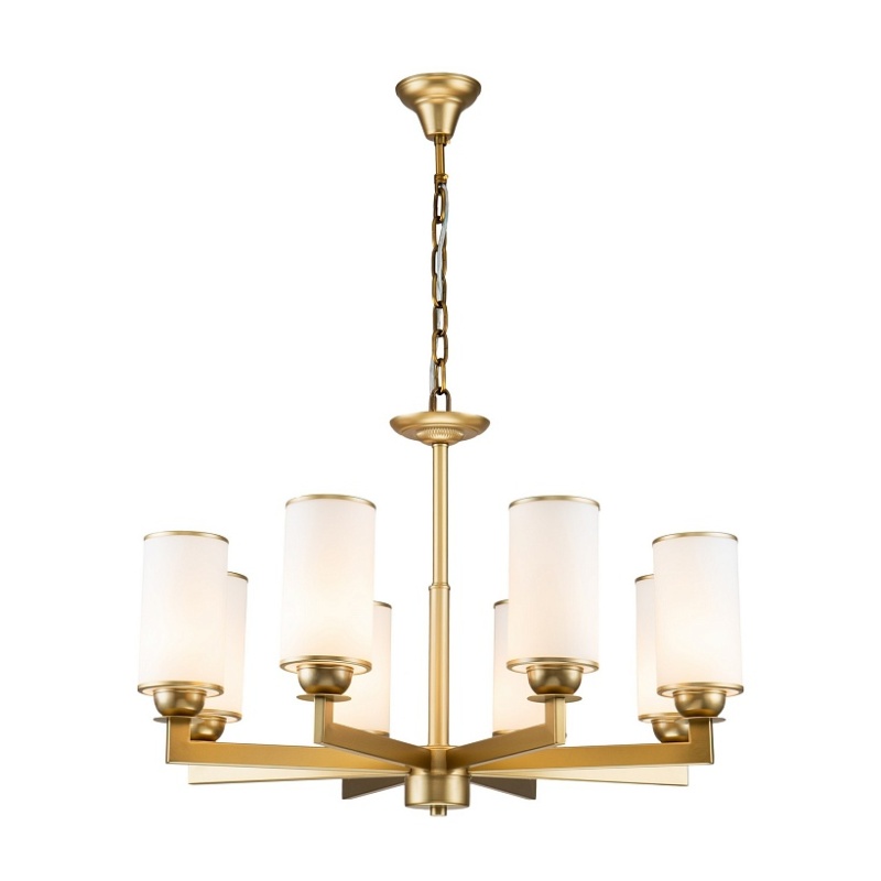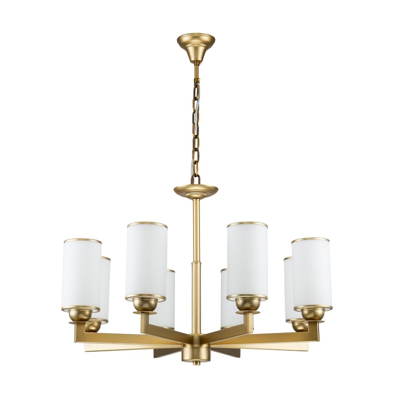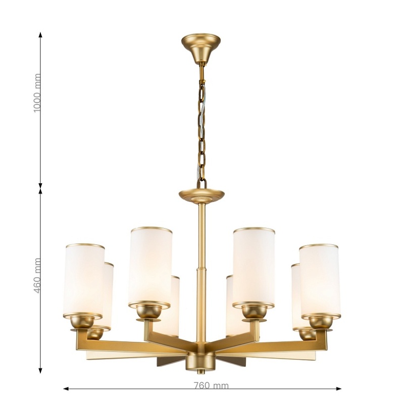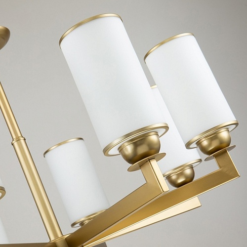 Каркас из металла цвета латунь, плафоны из белого матового стекла, сменные лампы, цоколь Е27.