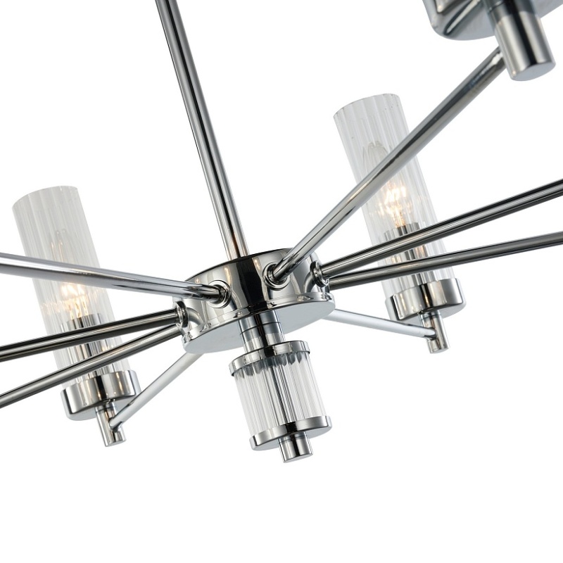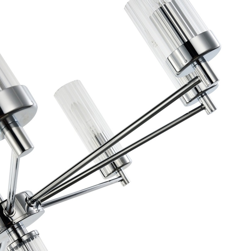 Хромированный металлический каркас, плафон из прозрачного рифленого стекла, регулируемая высота.