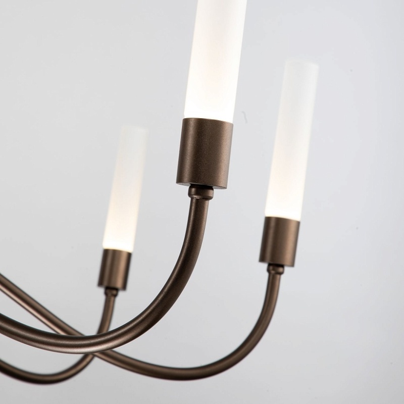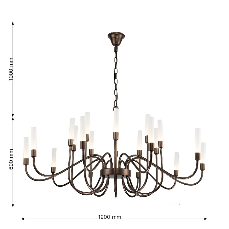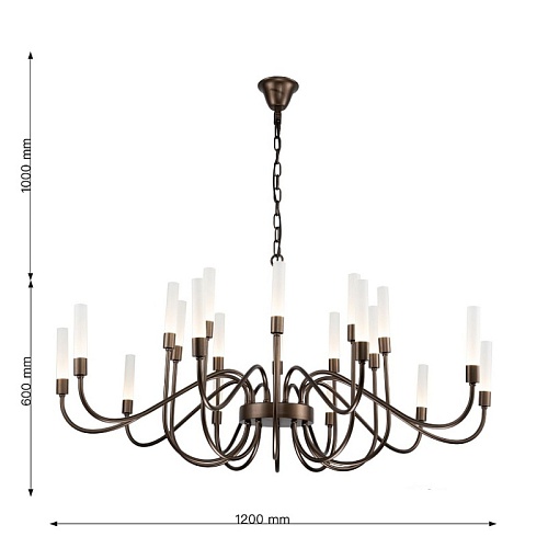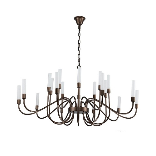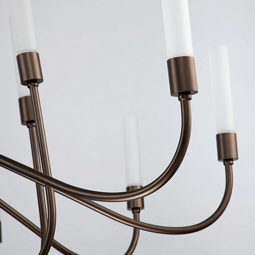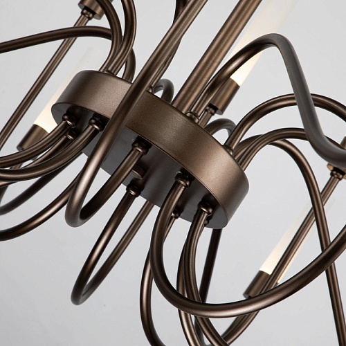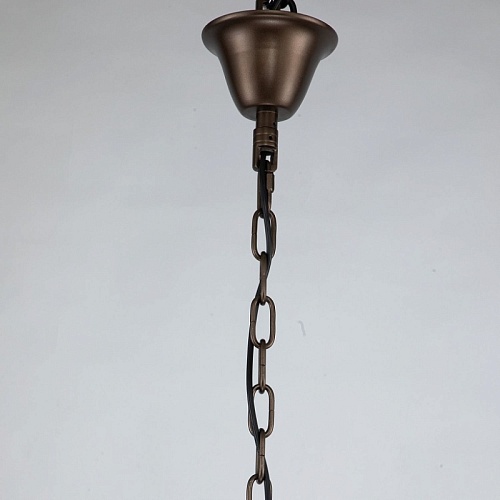 Металлический каркас темно-коричневого цвета, плафоны из полупрозрачного стекла.