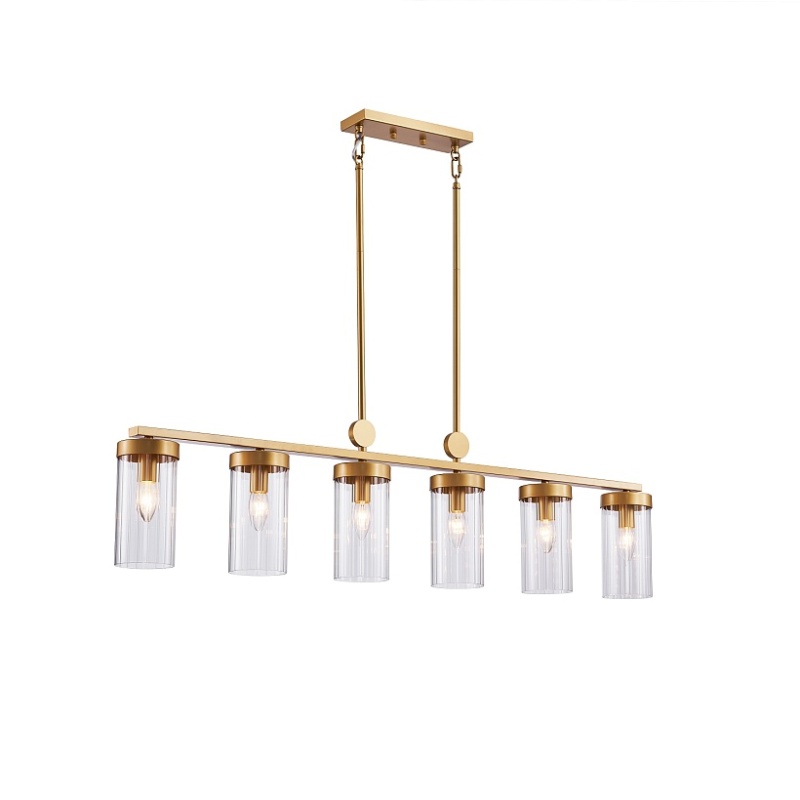Каркас золотого цвета, плафоны из прозрачного рельефного стекла, регулируемая высота.