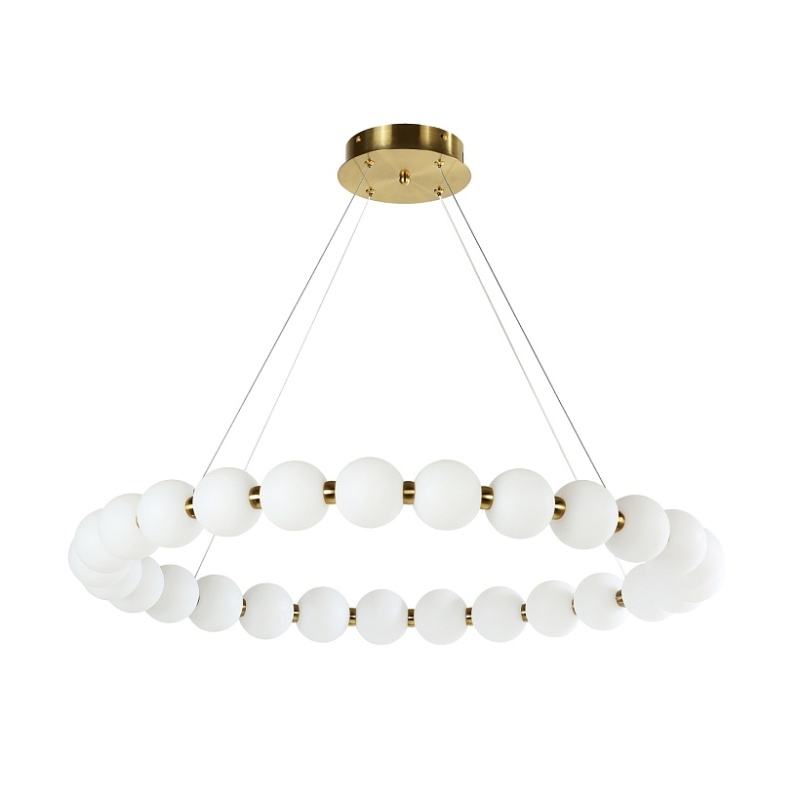 Металлический каркас цвета золота, плафон состоит из акриловых шаров белого цвета.
