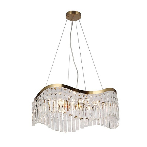 Каркас в цвете гальваническое золото, декорирована прозрачным хрусталем, сменная лампа.