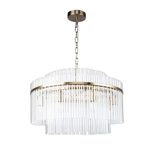 Металлический каркас в цвете латунь, многослойный декор из выдувных стеклянных трубочек, регулируемая высота.
