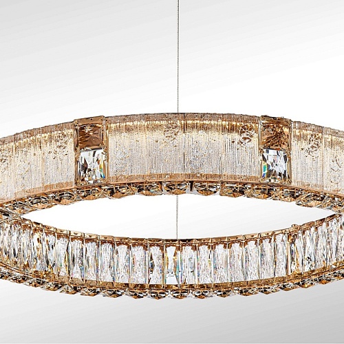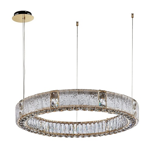 Каркас в цвете матовое золото, декор из матового рельефного стекла цвета шампанского по Муранской технологии, вставки из хрусталя в коньячном цвете, регулируемая высота.