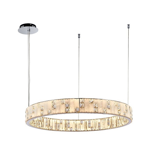 Хромированный металлический каркас, декор из матового рельефного стекла цвета шампанского по Муранской технологии, вставки из хрусталя в коньячном цвете, регулируемая высота.