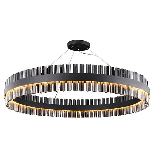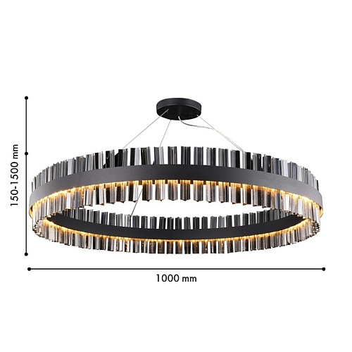Металлический каркас черного цвета, дымчато-серый хрусталь, регулируемая высота, встроенная лента LED.