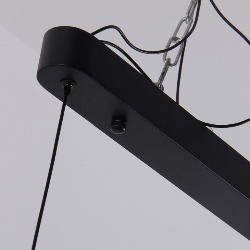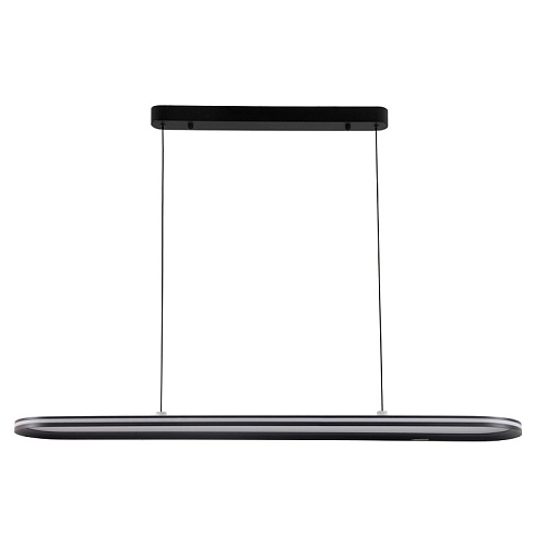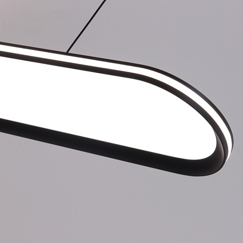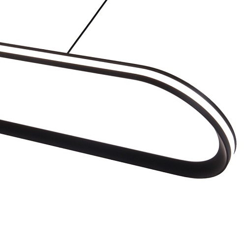 Металлический каркас овальной формы в черном матовом цвете, лента LED по нижней и боковой поверхности плафона, регулируемая высота.