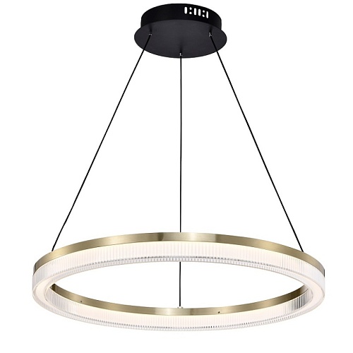 Металлический каркас в цвете гальваническое золото, декоративный акриловый плафон со сложным многослойным оптическим узором, регулируемая высота.