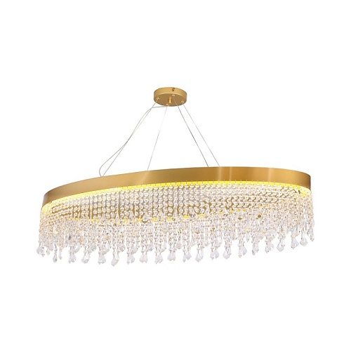 Овальная люстра с каркасом в цвете латунь, хрустальные подвески высшего качества, встроенная лента со светодиодами внутри кольца, регулируемая высота, пуль управления.