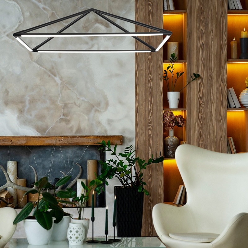 Металлический каркас в черном цвете, выполнен из металлических трубочек и имеет форму пирамиды, в основание встроена лента LED.