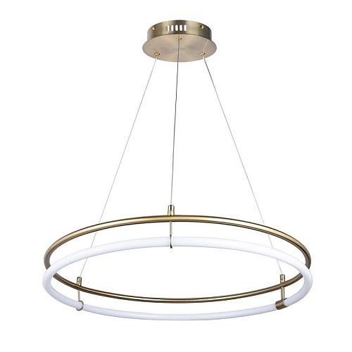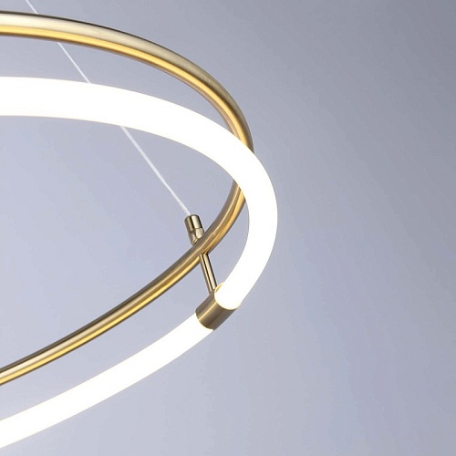 Каркас из метала золотого цвета в форме обода, рассеиватель в виде силиконовой трубки в форме обода, параллельного Каркасу, с LED-элементом внутри, регулируемая высота, возможность использования универсальных креплений.