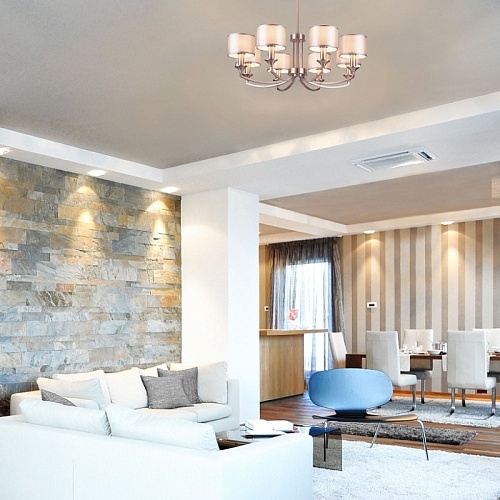 • Важный фактор для потолочных ламп и люстр – направление рассеивания света. Есть различные варианты и направления. В сторону, вверх или вниз, на пол. Если вы выбрали направление «вверх», следует рассмотреть более мощную лампу, так как освещение будет происходить при помощи отраженного от потолка света.
