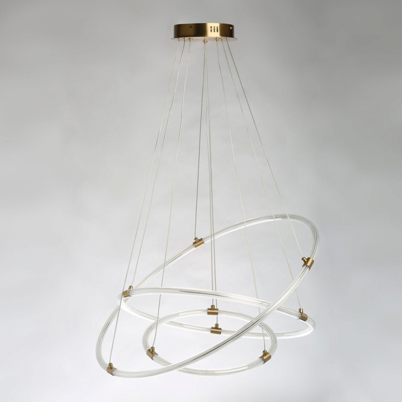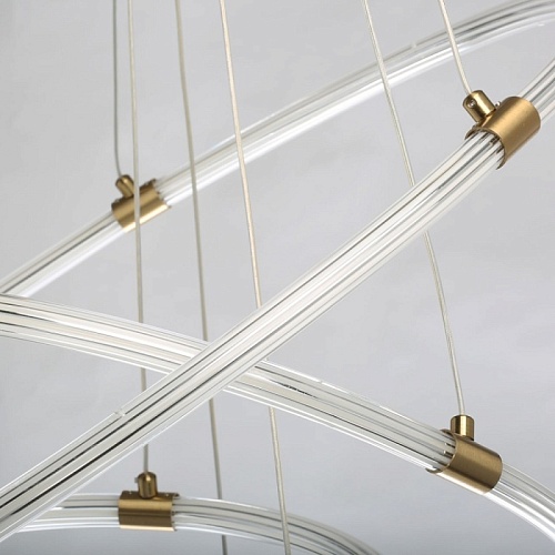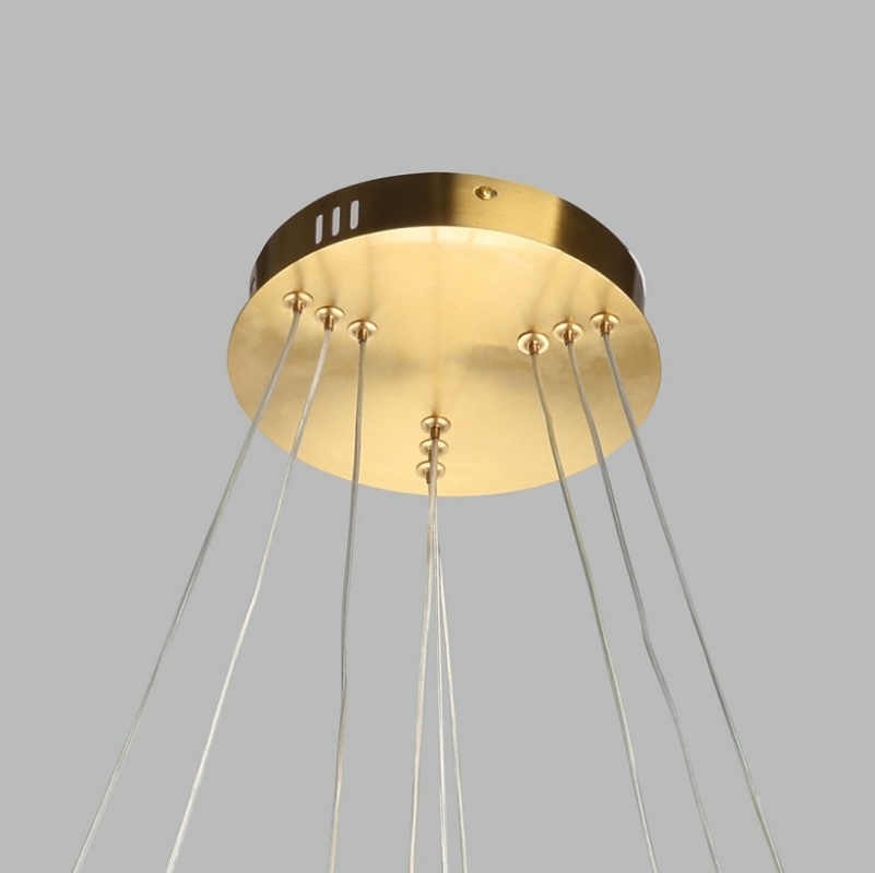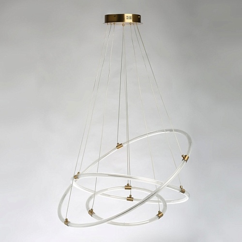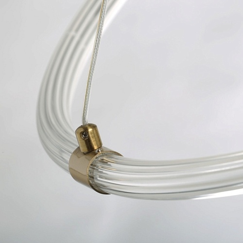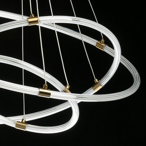 Металлическое основание люстры гальванизировано в цвет бронзы. Плафон выполнен из прозрачного акрила, сформированного по технологии экструзии. Светодиодный источник света внутри плафона заключен в белый матовый силикон.