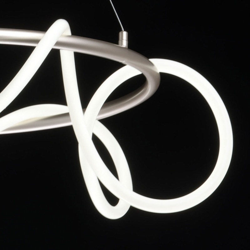 Металлическое основание светильника окрашено в цвет никеля. Гибкий плафон выполнен из белого матового силикона.