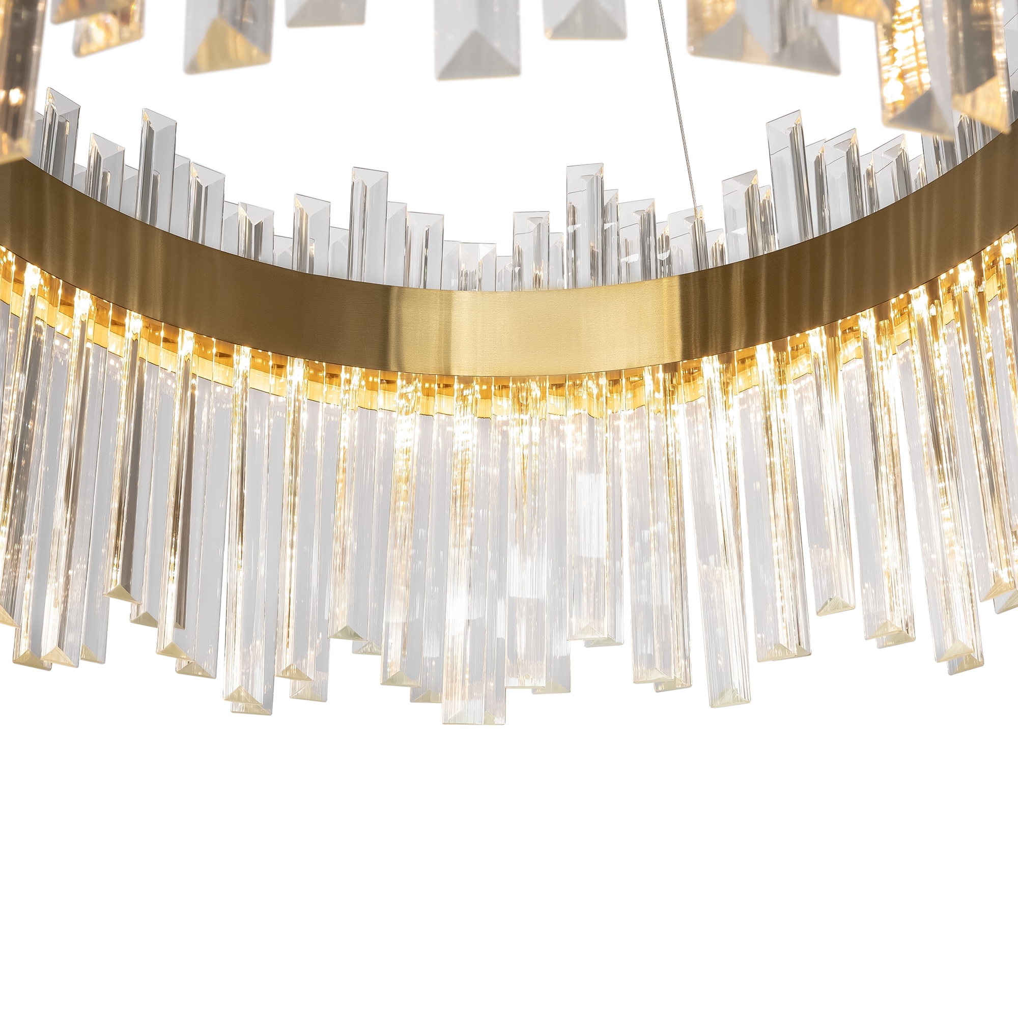 Металлическая арматура. Цвет – золото. Декор в виде прозрачных стеклянных трубок. Трендовый эффект парения. LED-источники света энергоэффективны и долговечны в эксплуатации.