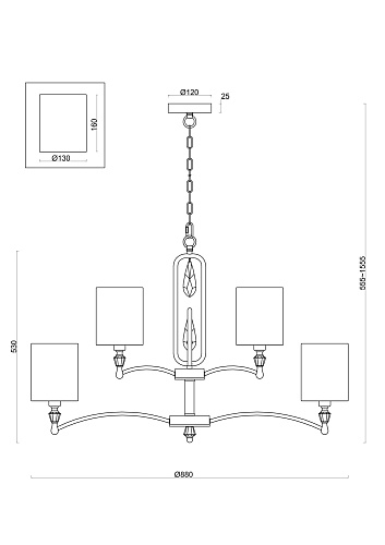 • Диаметр потолочной чаши (мм)