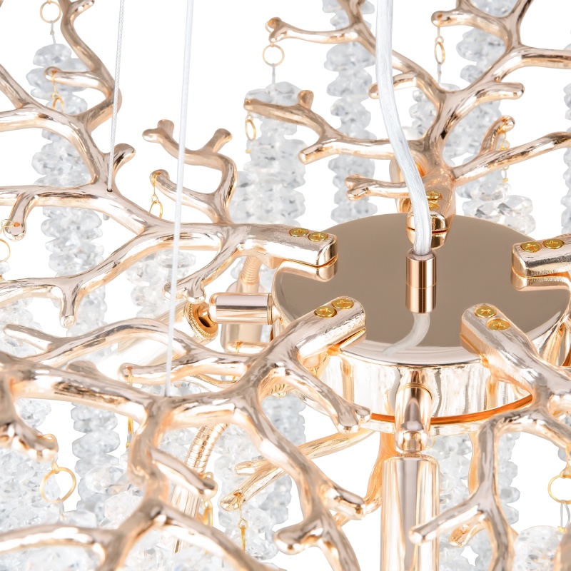 Материалы арматуры —металл, цвет — золото. Хрустальные декоративные элементы напоминают капельки - создают глубокие переливы света. Дизайн в трендовой растительной тематике. Источник света — лампа с цоколем G9 и с поворотной функцией.