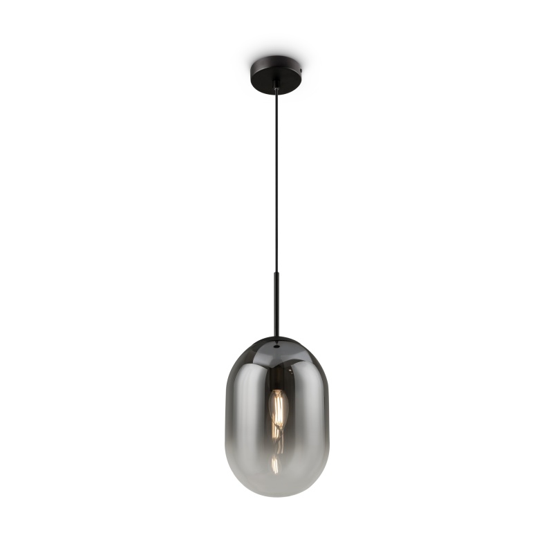 Арматура из металла матового черного цвета. Плафон из стекла с окрасом растяжка. Цвет дымчатый. Модификация — настенные, потолочные и настольные светильники. Источник света — лампа. Цоколь G9.