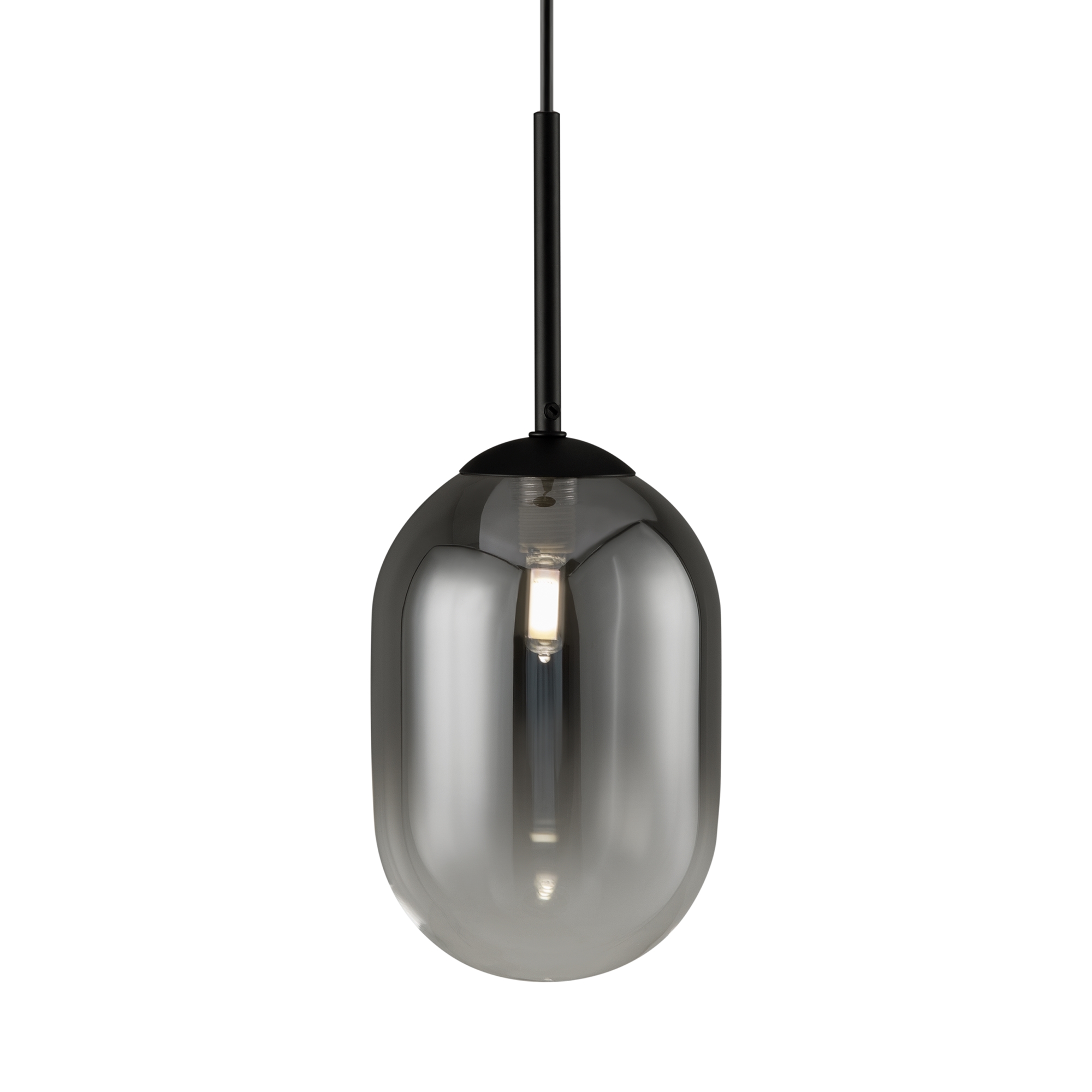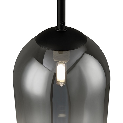 Арматура из металла матового черного цвета. Плафон из стекла с окрасом растяжка. Цвет дымчатый. Модификация — настенные, потолочные и настольные светильники. Источник света — лампа. Цоколь G9.
