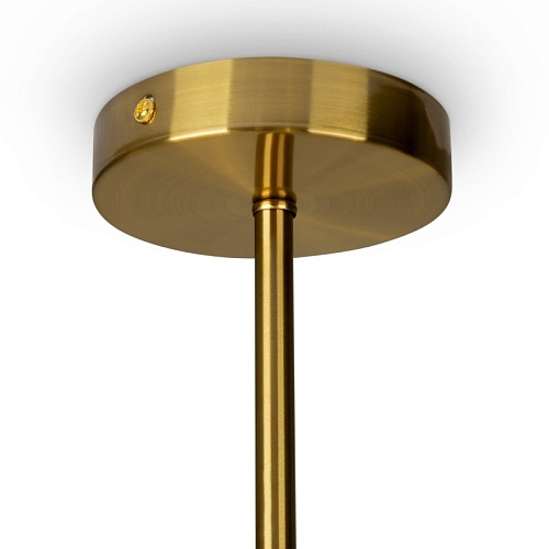 Металлическая арматура, цвет - латунь. Керамические декоративные элементы. Матовые белые абажуры. Силуэт светильника вытягивает интерьер. Источник света — лампа. Цоколь E14.