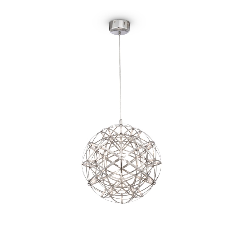 Серия Amber представляет воздушные светильники-сферы, выполненные в трендовом стиле хай-тек. Хромированная металлическая арматура и плафон, сотканный из переплетающихся лент, создают запоминающийся современный образ. Встроенные светодиоды экономят электроэнергию и красиво подсвечивают сферу. В выключенном состоянии светильник выглядит как абстрактное произведение искусства и является полноправной частью декоративного ансамбля интерьера. Серию составляют подвесы различного диаметра – их можно использовать по отдельности, а можно комбинировать в группы. Для обстановки в стиле хай-тек, минимализм, лофт, помещений кафе и ресторанов светильник станет идеальным решением.