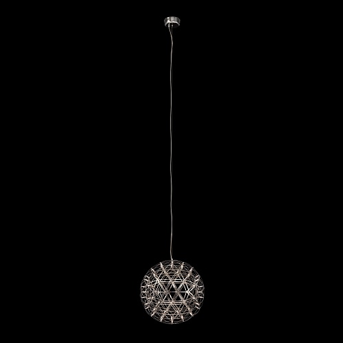 Серия Amber представляет воздушные светильники-сферы, выполненные в трендовом стиле хай-тек. Хромированная металлическая арматура и плафон, сотканный из переплетающихся лент, создают запоминающийся современный образ. Встроенные светодиоды экономят электроэнергию и красиво подсвечивают сферу. В выключенном состоянии светильник выглядит как абстрактное произведение искусства и является полноправной частью декоративного ансамбля интерьера. Серию составляют подвесы различного диаметра – их можно использовать по отдельности, а можно комбинировать в группы. Для обстановки в стиле хай-тек, минимализм, лофт, помещений кафе и ресторанов светильник станет идеальным решением.