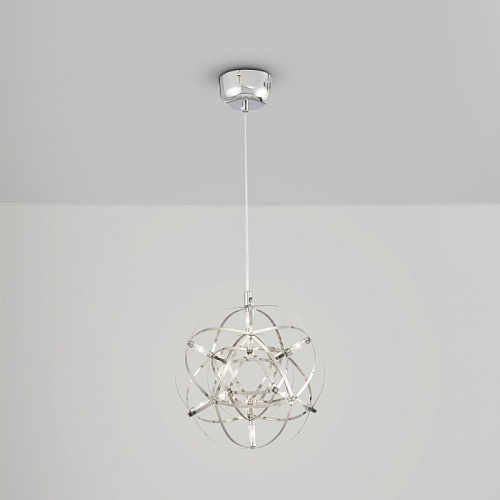 Серия Amber представляет воздушные светильники-сферы, выполненные в трендовом стиле хай-тек. Хромированная металлическая арматура и плафон, сотканный из переплетающихся лент, создают запоминающийся современный образ. Встроенные светодиоды экономят электроэнергию и красиво подсвечивают сферу. В выключенном состоянии светильник выглядит как абстрактное произведение искусства и является полноправной частью декоративного ансамбля интерьера. Серию составляют подвесы различного диаметра – их можно использовать по отдельности, а можно комбинировать в группы. Для обстановки в стиле хай-тек, минимализм, лофт, помещений кафе и ресторанов светильник станет идеальным решением.