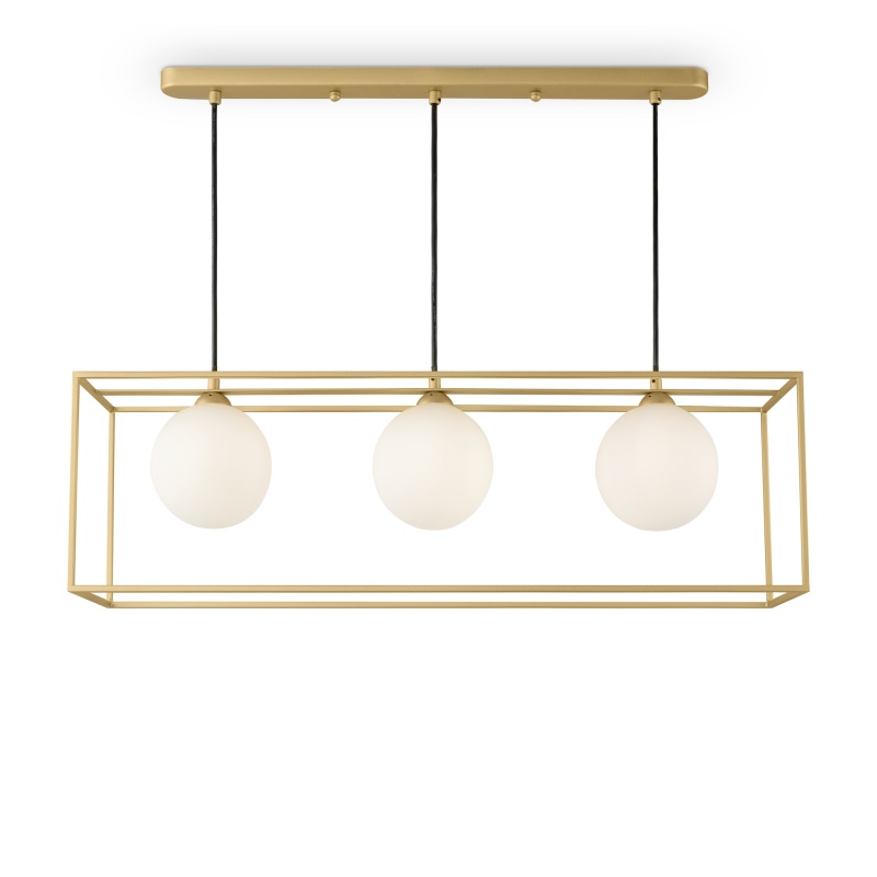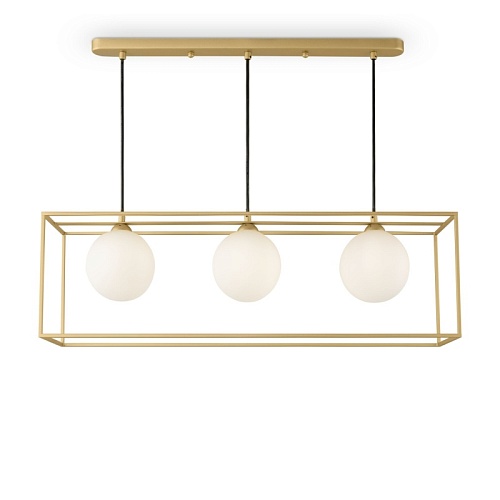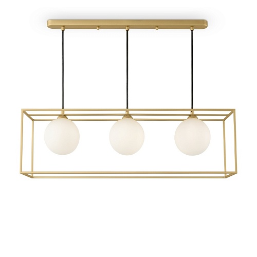 Нетривиальная игра с геометрией – сфера, заключенная в прямоугольное обрамление – яркое и весьма смелое дизайнерское решение. Стеклянные плафоны матово-белого цвета эффектно контрастируют с металлической арматурой роскошного золотого оттенка. Компактные размеры светильника позволяют использовать его даже в небольших комнатах с низкими потолками. В серии представлены люстры различной высоты на 3 и 1 плафон, а также настольная лампа. Светильник-арт-объект станет достойным украшением современных интерьеров, выполненных в различных стилевых решениях.