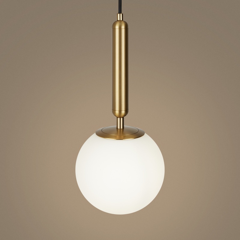Металлическая арматура оттенка латуни. Плафоны-сферы в двух вариантах: матовое белое стекло и прозрачное с рельефной фактурой. Широкий ассортимент для зональной подсветки. В качестве источника света используется лампа с цоколем Е14.