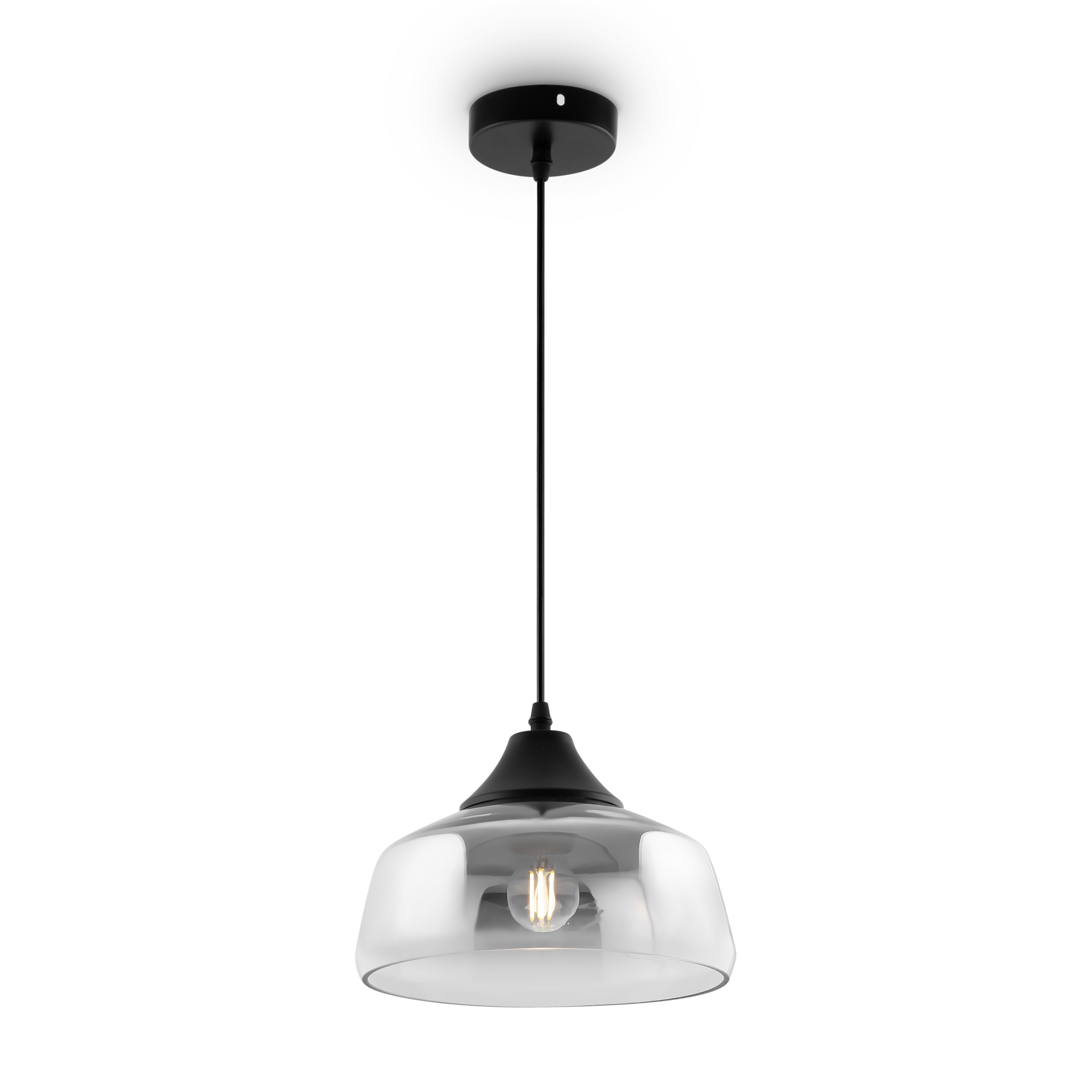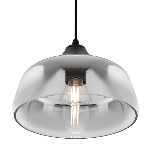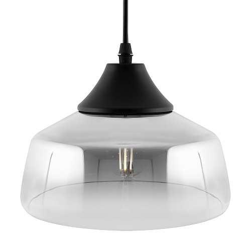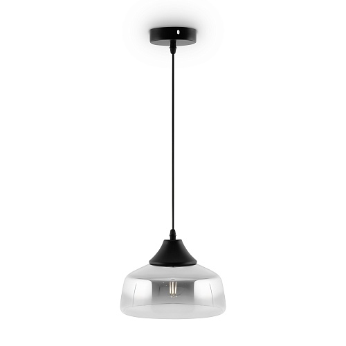 Металлическая арматура в черном цвете. Стеклянный плафон с мягким градиентным переходом оттенков. Цветовые решения – серый, янтарный. Трендовая обтекаемая форма. Источник света – лампа с цоколем E27.