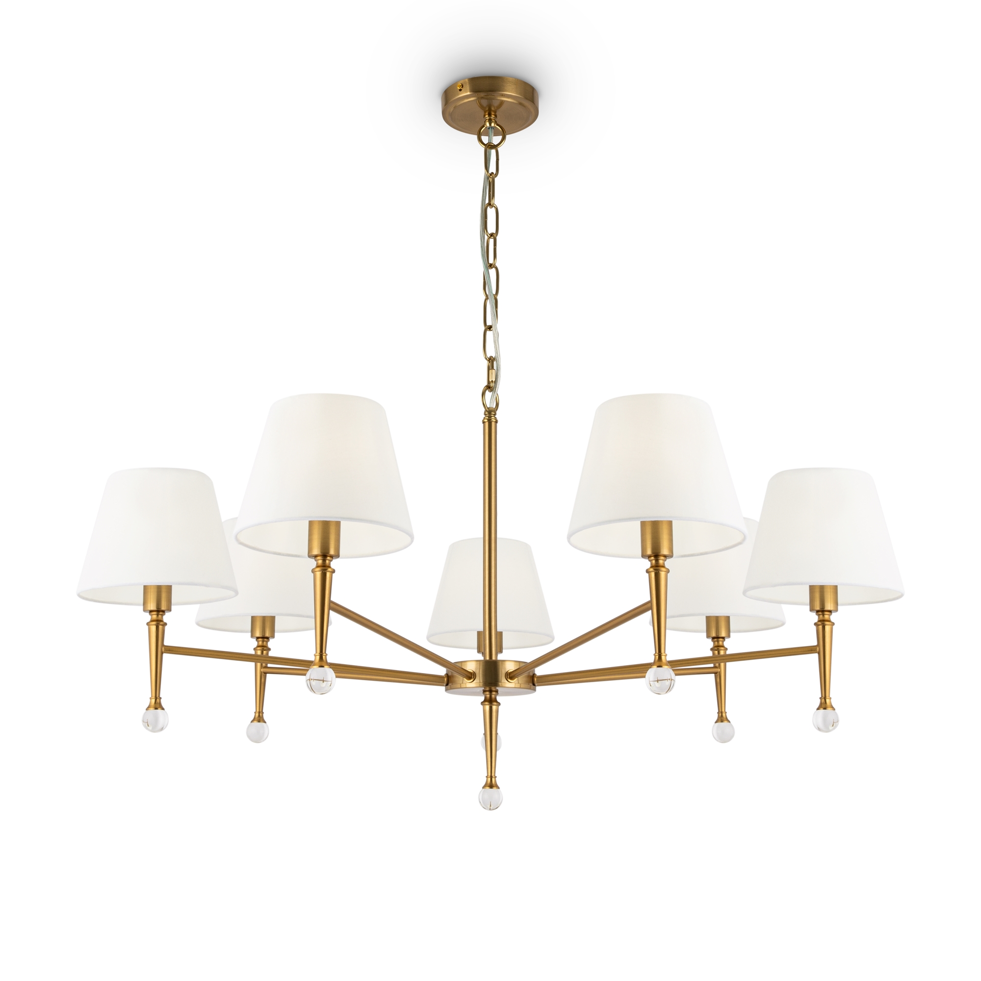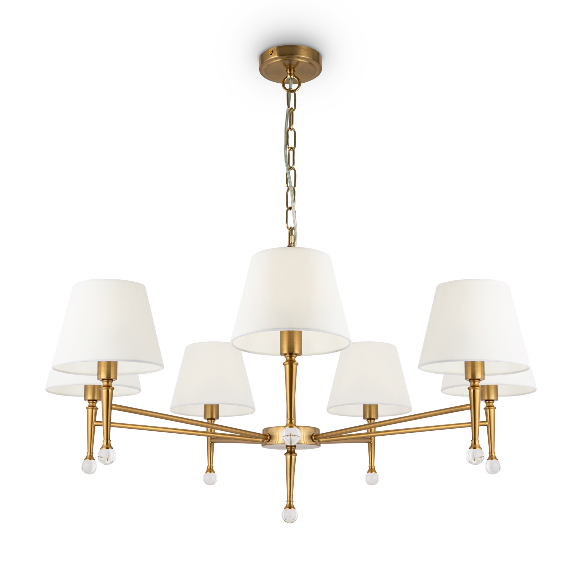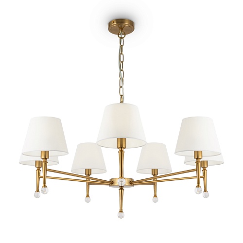 Арматура - металл, плафоны - стекло. Цветовые комбинации арматуры и плафона: черный + прозрачный, черный + янтарный, латунь + прозрачный. Элементы декора - выдувные «бусины» из стекла. Высота проводов регулируется. Источник света - лампа с цоколем GU10.