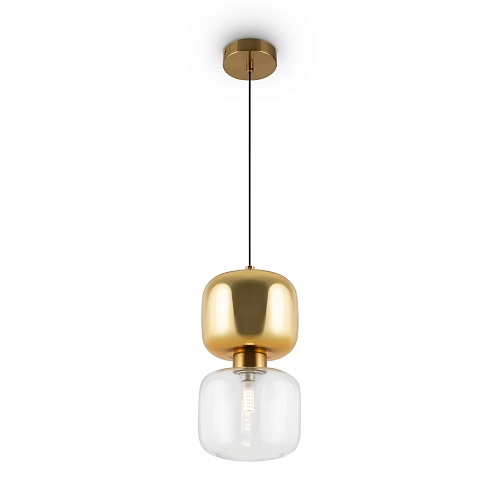 Металлическая арматура в двух оттенках: латунь, хром. Стеклянный плафон оригинальной формы. Верхняя часть плафона гальванизирована в тон арматуре, нижняя – прозрачная. Источник света – лампа G9.
