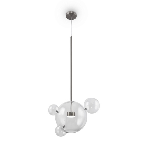 Материал арматуры – металл, цвет – латунь. Плафон – прозрачное глянцевое стекло. Трендовая сферическая форма. Энергоэффективные LED-источники обеспечивают равномерный яркий свет.