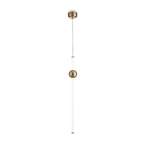 Арматура — тонкая металлическая, цвет — чёрный + латунь. Оригинальная конструкция. Три плафона-цилиндра с затемнённым стеклом закреплены на металлической оси cо встроенным LEDисточником света. Тренд «invisible light». Цветовая температура — 3000 К. Регулируемая высота.