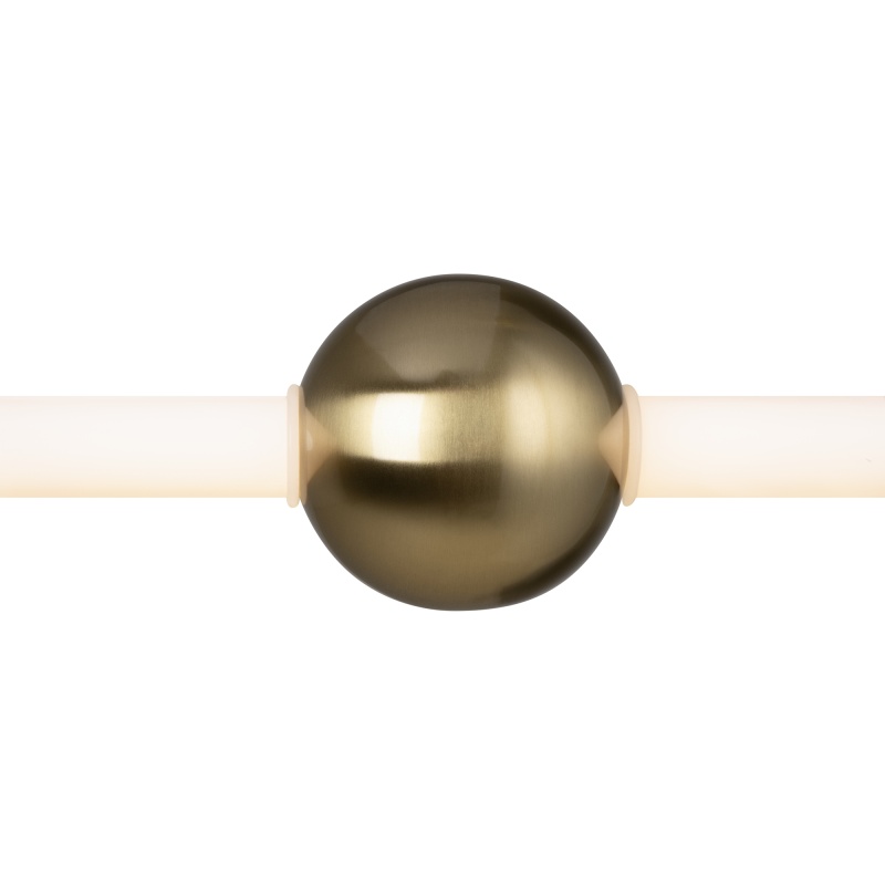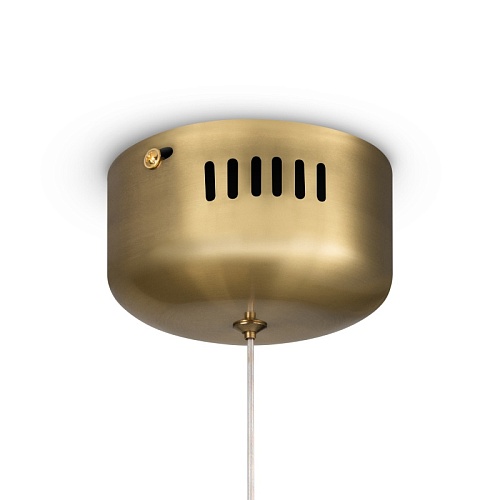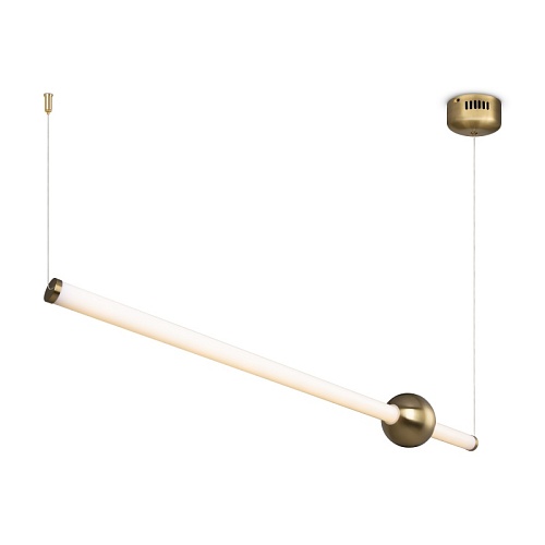 Арматура — тонкая металлическая, цвет — чёрный + латунь. Оригинальная конструкция. Три плафона-цилиндра с затемнённым стеклом закреплены на металлической оси cо встроенным LEDисточником света. Тренд «invisible light». Цветовая температура — 3000 К. Регулируемая высота.