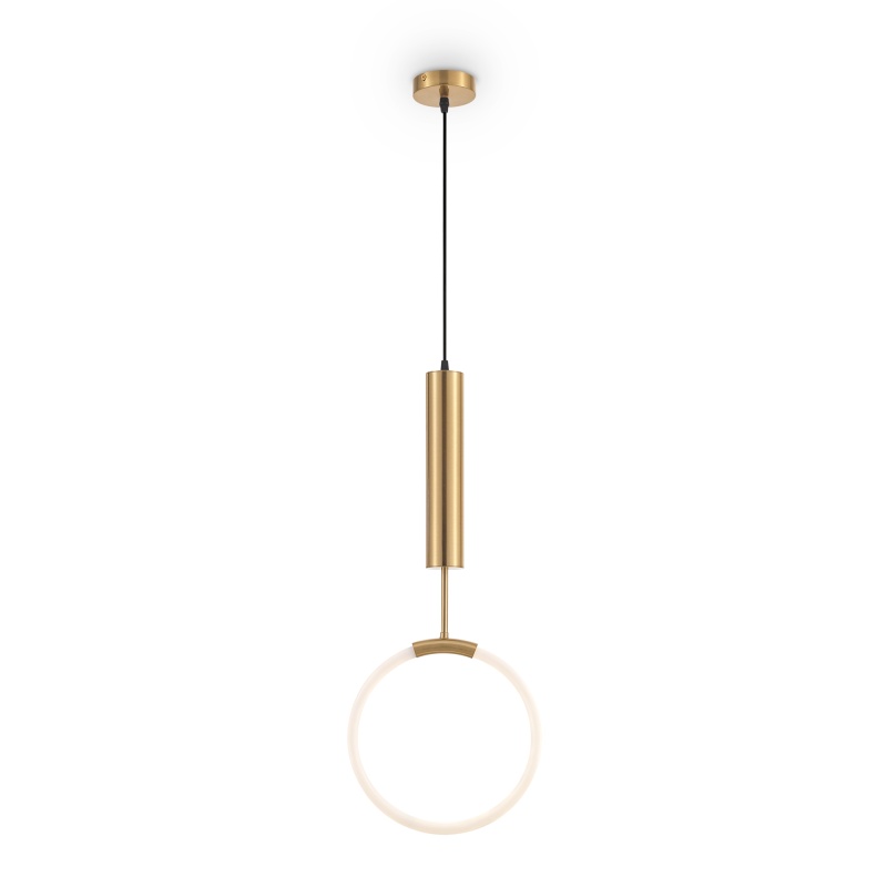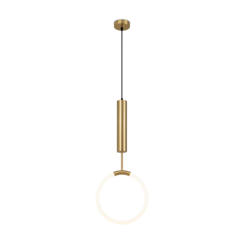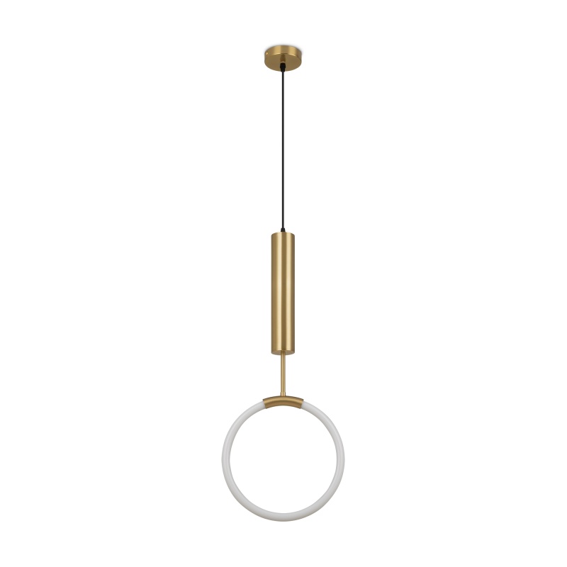 Арматура — тонкая металлическая, цвет — чёрный + латунь. Оригинальная конструкция. Три плафона-цилиндра с затемнённым стеклом закреплены на металлической оси cо встроенным LEDисточником света. Тренд «invisible light». Цветовая температура — 3000 К. Регулируемая высота.