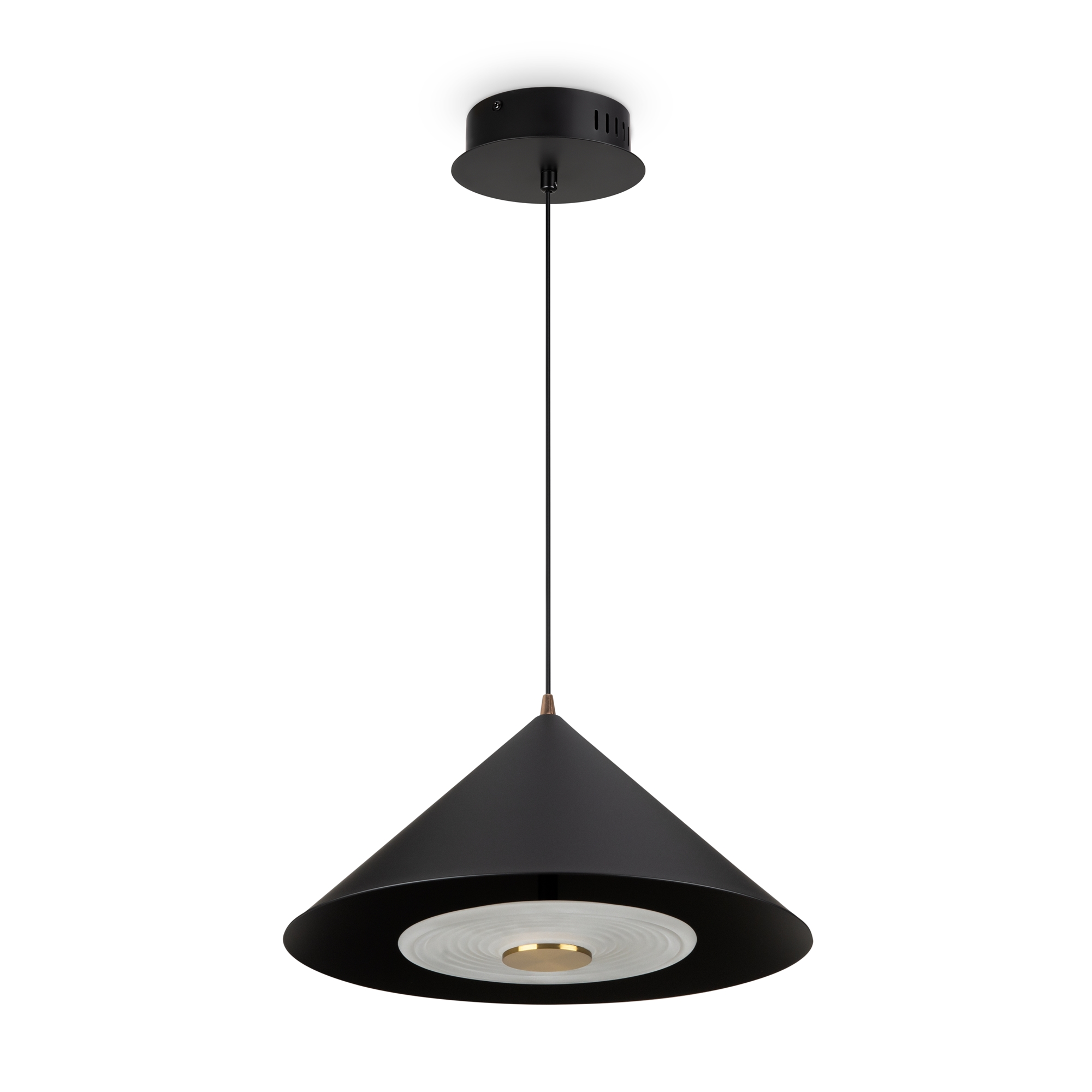 Металлическая арматура, цвета — чёрный и белый. Плафоны — конусовидные, среднего размера. Универсальный минималистичный дизайн, регулируемая высота. Светодиодный источник света. Цветовая температура — 3000К.