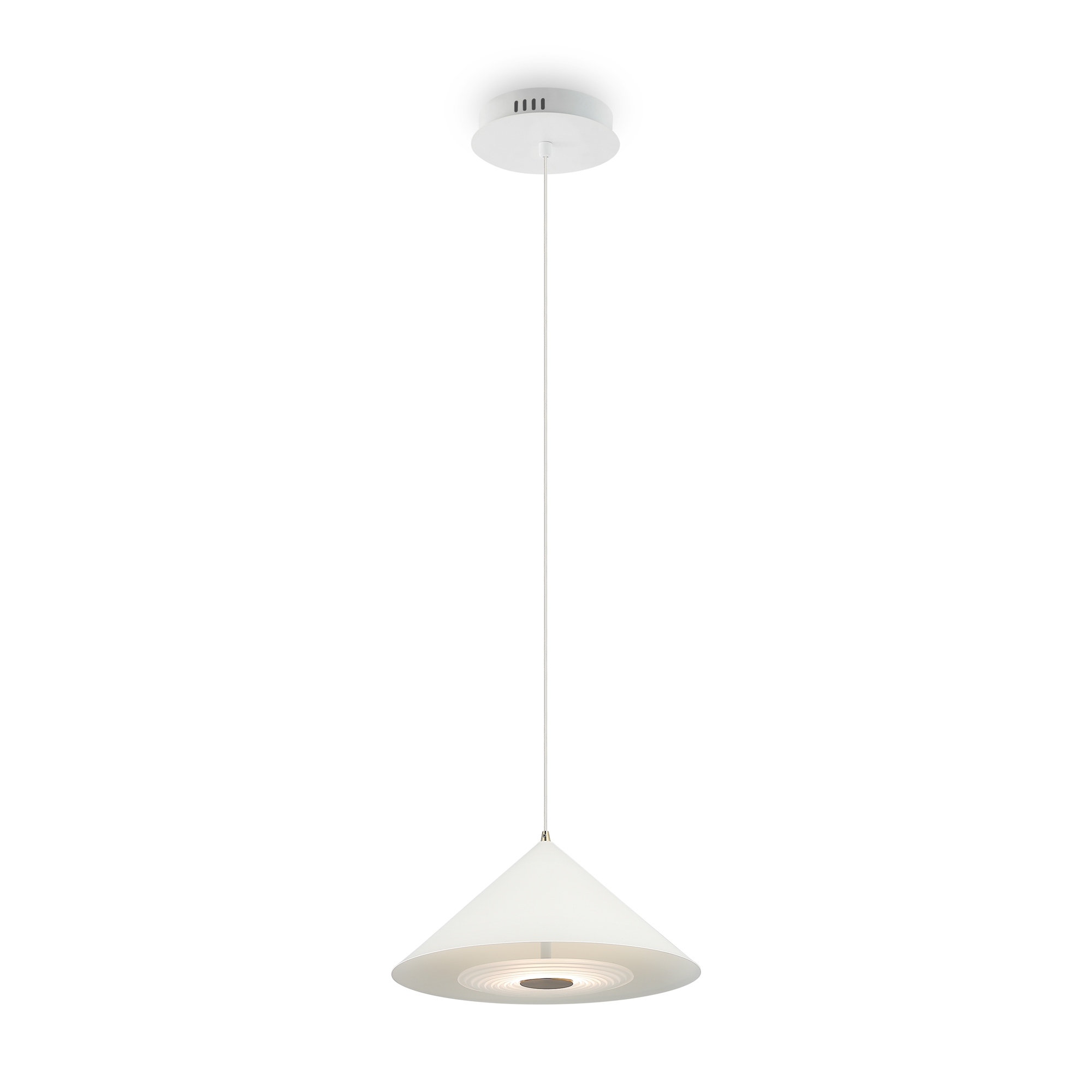 Металлическая арматура, цвета — чёрный и белый. Плафоны — конусовидные, среднего размера. Универсальный минималистичный дизайн, регулируемая высота. Светодиодный источник света. Цветовая температура — 3000К.