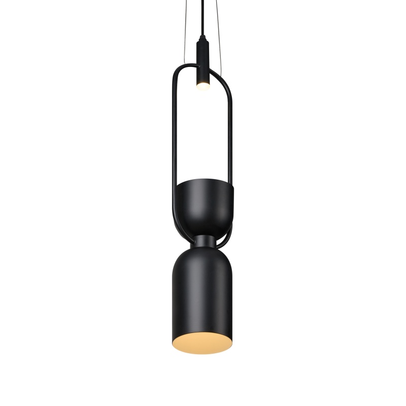 Уникальный светильник-кашпо в форме песочных часов. Верхняя часть плафона представляет собой кашпо для использования под натуральные или искусственные растения. Корпус светильника выполнен из металла, цвет - черный. Комбинированный источник света. В верхней части - светодиодный свет с теплой цветовой температурой 3000К для подсветки растения. В нижней части плафона - лампа с цоколем Е27 для основного освещения пространства. Светильник идеально подойдет для создания композиций.