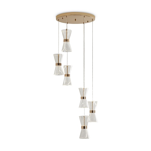 Арматура металл. Цвет золото. Плафоны из акрила. Форма песочные часы. Золотая окантовка как декоративный элемент. К светильникам прилагается пульт управления. LED источник света. Цветовая температура 2600-6000К.