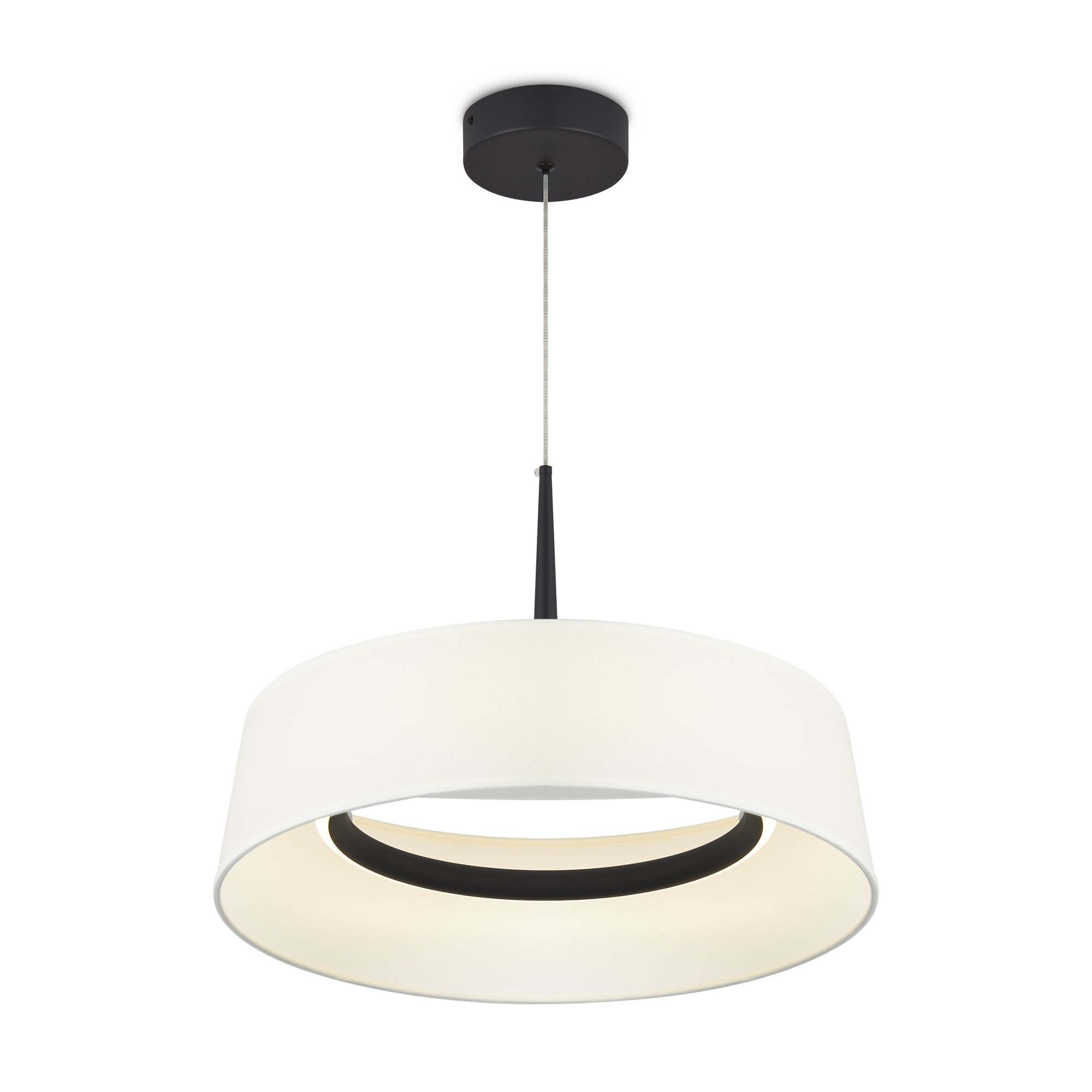 Арматура - металл. Цвет - черный. LED-источник света округлой формы спрятанный под тонкой юбкой абажура из ткани теплого белого оттенка. Серия создана на основе популярной серии Vabi. Цветовая температура 3000К.