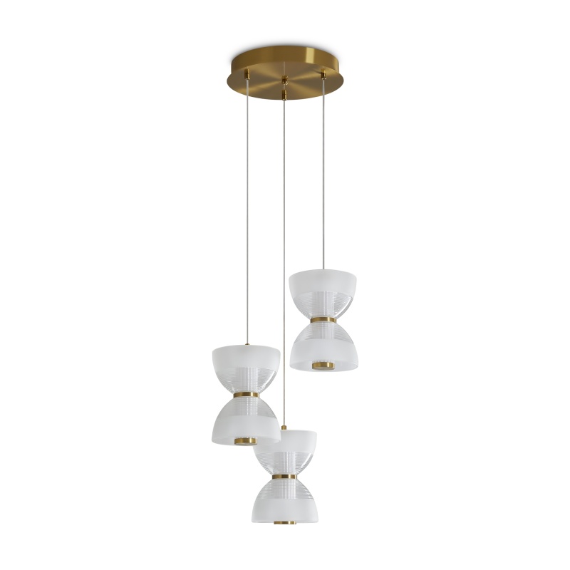 Арматура металл. Цвет арматуры латунь. Плафоны прозрачные с полупрозрачной окантовкой. LED источник света с цветовой температурой 3000К.