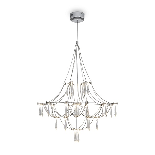 Арматура - хромированная нержавеющая сталь. В соединениях арматуры Led источник света и декоративные элементы из хрусталя в виде капелек. Цветовая температура 3000К.