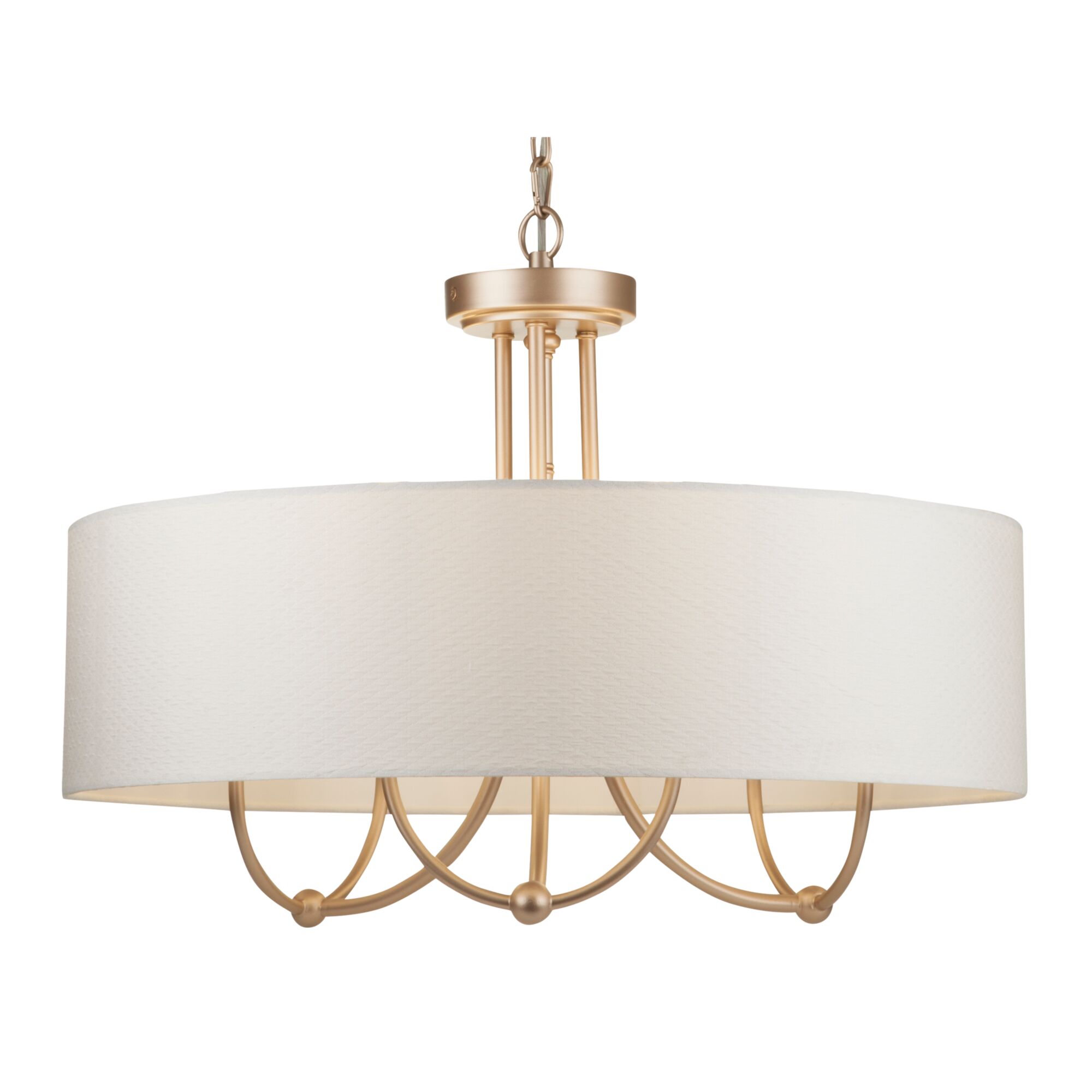 Металлическая арматура в цвете матового золота. Абажур с тиснением – ткань на ПВХ, цвет – кремовый. Декоративные элементы с флористическим узором. Регулируемая высота. Источник света - лампа с цоколем Е14.