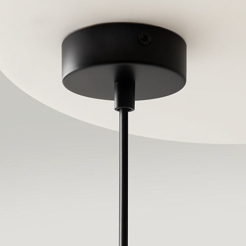 Арматура из металла в трех оттенках: белый, черный, латунь. Плафоны-сферы закреплены на округлом металлическом каркасе. Материал плафонов — выдувное стекло, цвет — белый. Высота подвесных моделей регулируется.