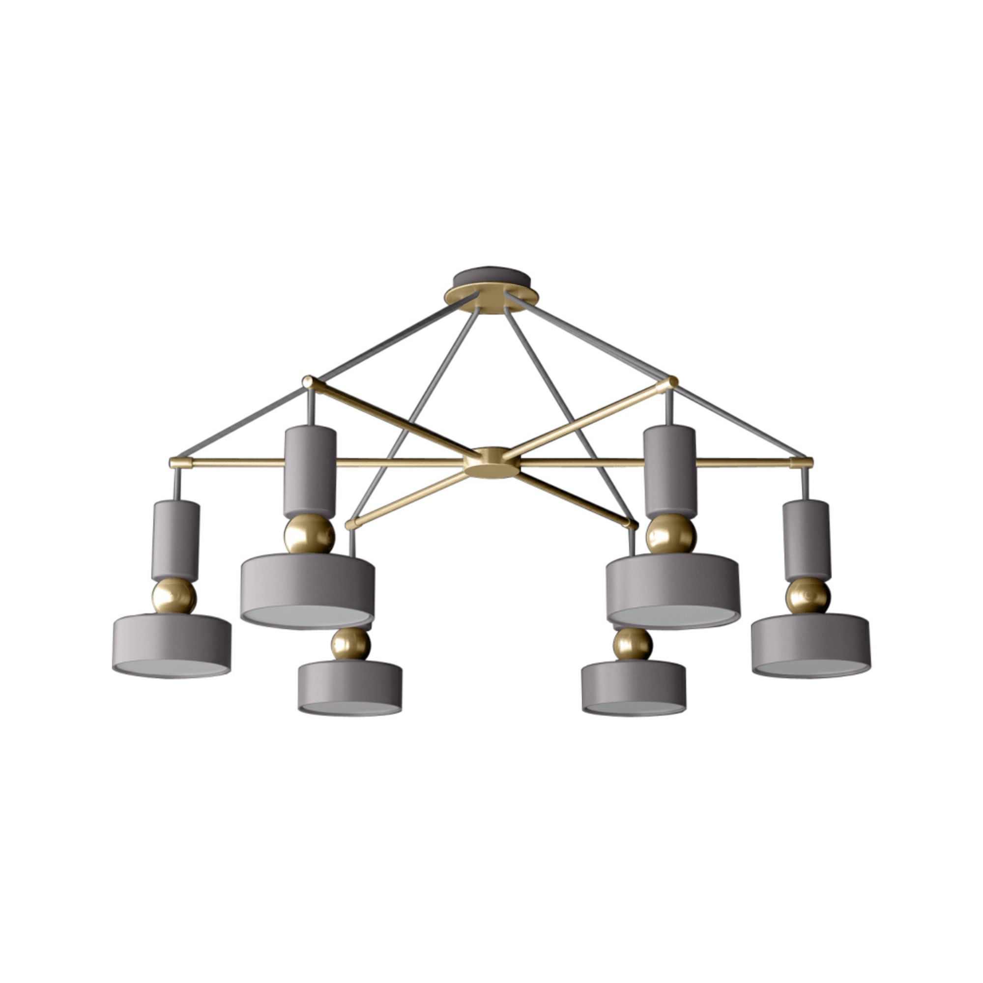 Арматура из металла в сером цвете. Металлические абажуры окрашены в тон арматуре. Источники света – лампы с цоколем Е14 – скрыты под акриловым рассе ивателем.