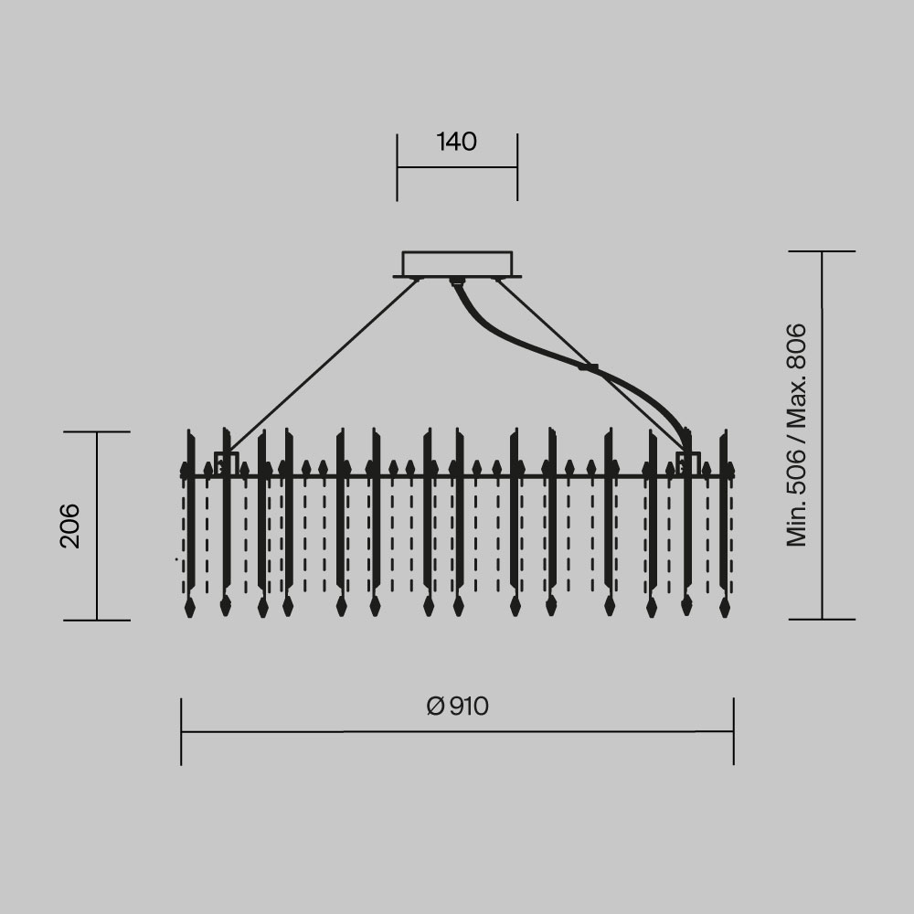 • Диаметр потолочной чаши (мм)