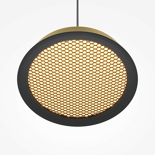Металлический корпус, цветовая палитра - черный, белый, золото и терракотовый. Два вида плафонов: «таблетка» с графичным рельефом из ассиметричных линий; «таблетка» + идеально-гладкая металлическая «тарелка». Дизайн вдохновлен супрематической эстетикой. LED-источник света, цветовая температура - 3000К. Регулируемый провод - 3 метра.